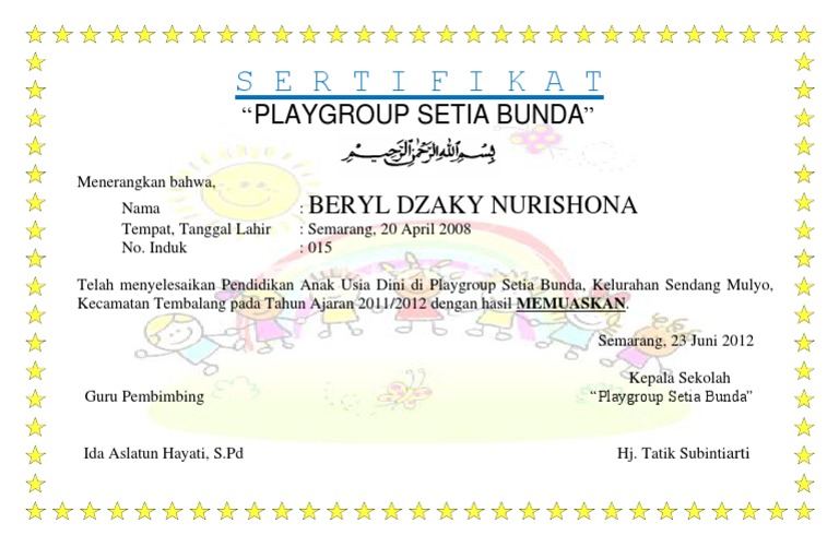Format Sertifikat Piagam Ijazah Paud Tk Kb Tpa Operator Sekolah from 1.bp.blogspot.com Maybe you would like to learn more about one of these? Check spelling or type a new query. We did not find results for: